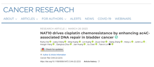 本研究揭示了NAT10過度表達與BAc化療耐藥、復發和不良預后的相關性。最終發現了NAT10抑制劑Remodelin與順鉑對聯用顯著增加了治療效果,驗證了其是一種潛在的、有效的化學耐藥BCa治療藥物。