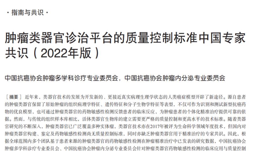 【專家共識】腫瘤類器官診治平臺的質量控制標準中國專家共識(2022年版)