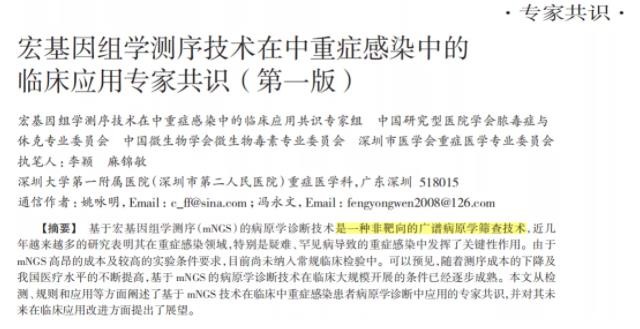 病原微生物宏基因組檢測(mNGS)專家共識與相關(guān)指南集錦